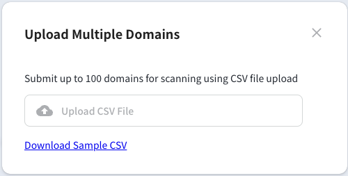 - To add multiple external scans to your Telivy portal click on “Create Assessment” > “External Scan” > “Upload Multiple Domains” > Upload the CSV File